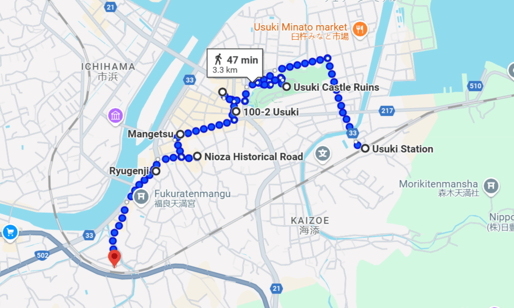 For those journeying from Fukuoka, you can board a limited express train from Hakata Station to Oita Station (a two-hour trip) and subsequently transfer to another limited express or local train to reach Usuki Station (45-60 minutes). With approximately two connections available every hour, the entire travel takes roughly three hours and costs approximately 6500 yen.